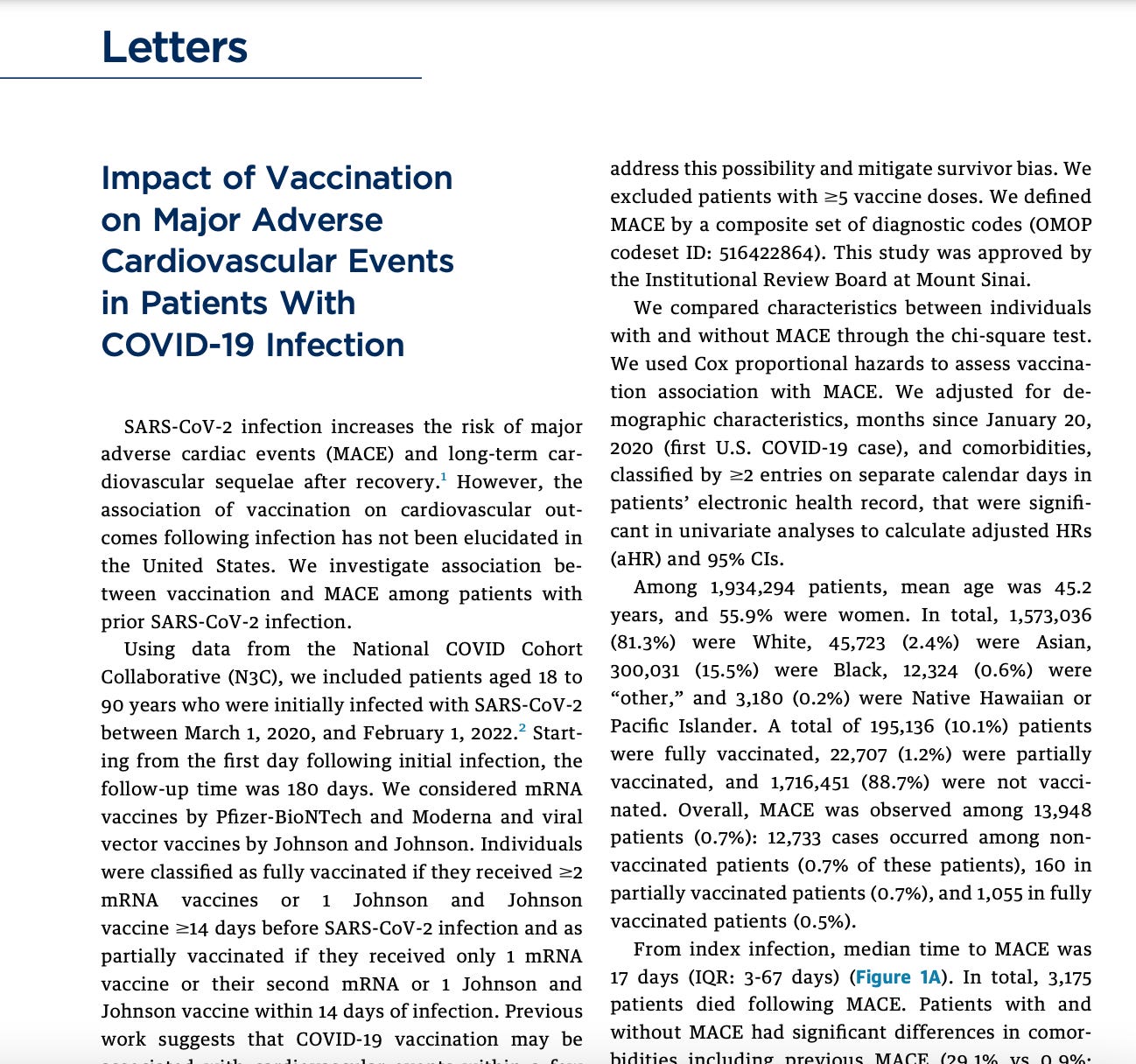 A JACC paper does not prove vax lowers MACE after a covid infection| Influencers misinterpret it