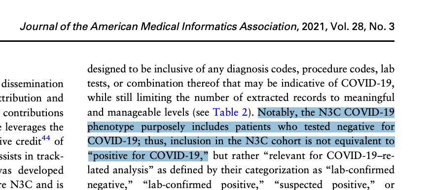 What does it mean to have COVID in the EHR? That comes from a linked paper. But basically you had to have a COVID19 code the dataset, but could have even tested negative for COVID. What a joke!
