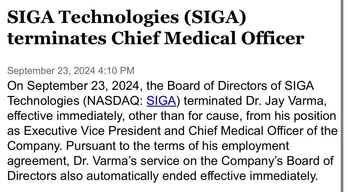 It turns out— at the time of video release— Varma was working for SIGA technologies. What is this company?