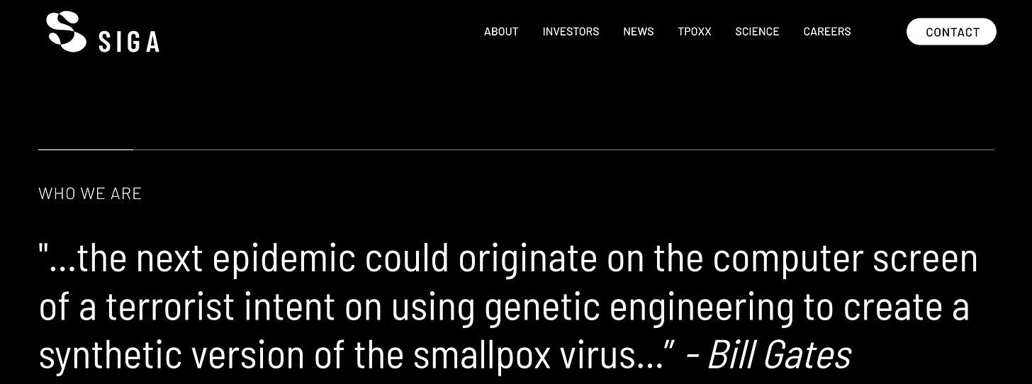 SIGA is a company that makes drugs in case a bioweapon is released. Their main product is tecovirimat.