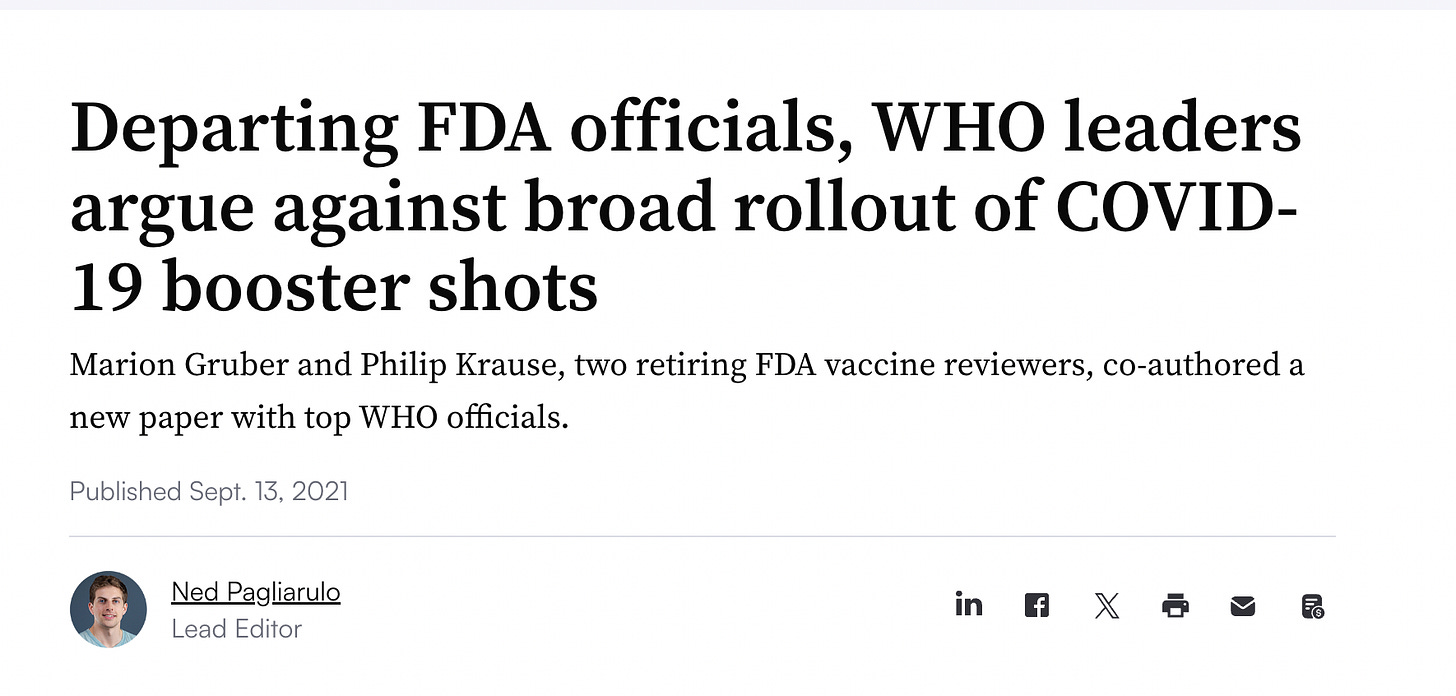 In short, Peter Marks was one of the most dangerous, pro-pharma regulators of the 21st century. He is leaving and crafting an narrative that portrays him as a saint. That’s natural. But what is shocking is that the media is so uncritical, and not honest about his actions. The same media that lied about lab leak, masks, and all things covid is lying about Peter Marks.