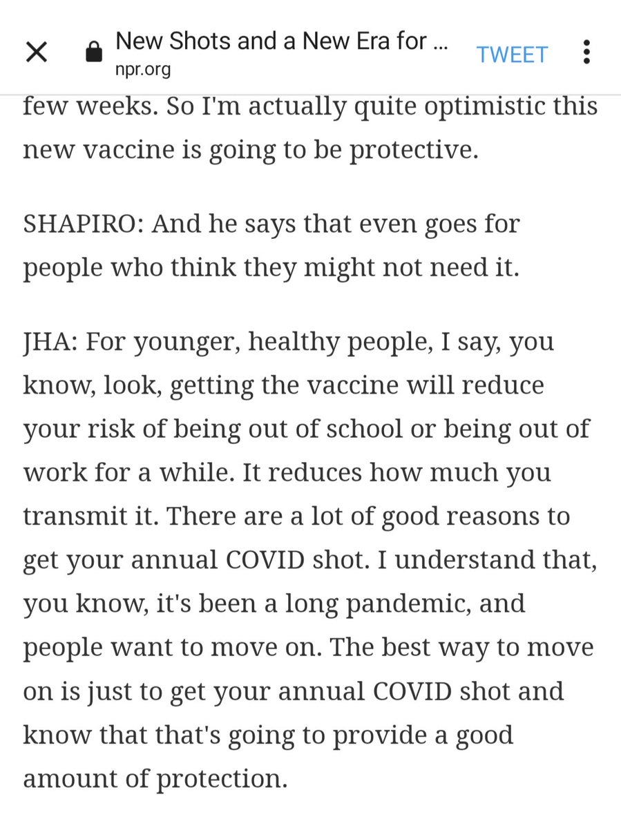 Ashish Jha has no data that the fall booster will slow transmission. He did not have it for the bivalent booster last year, or even the original booster. This is totally unproven.